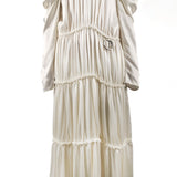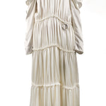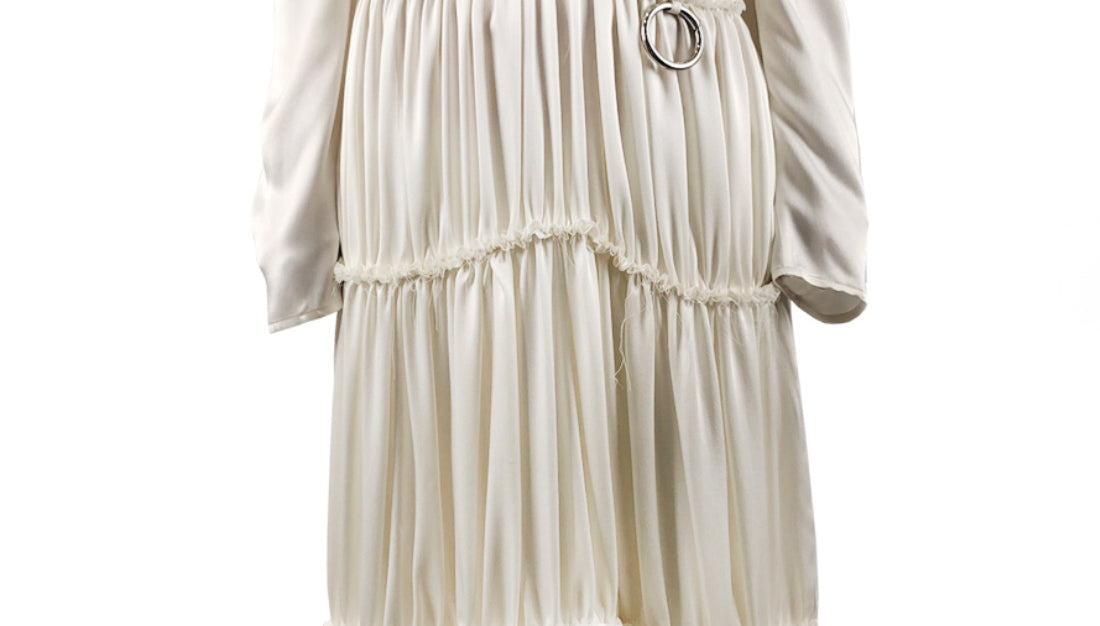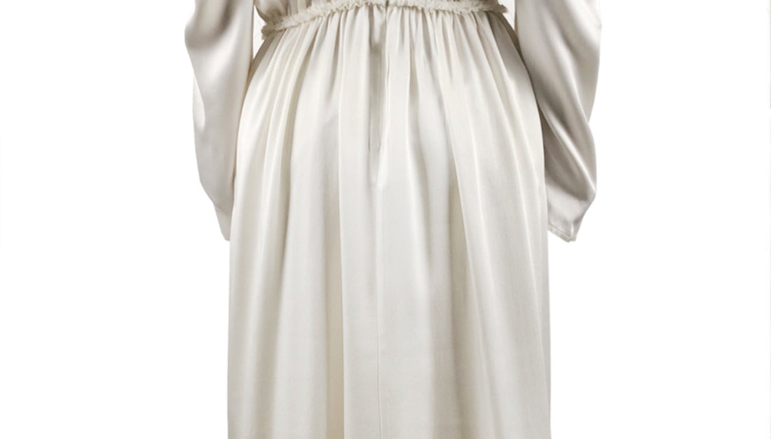 GATHERED SATIN DRESS WITH RUFFLED SLEEVES