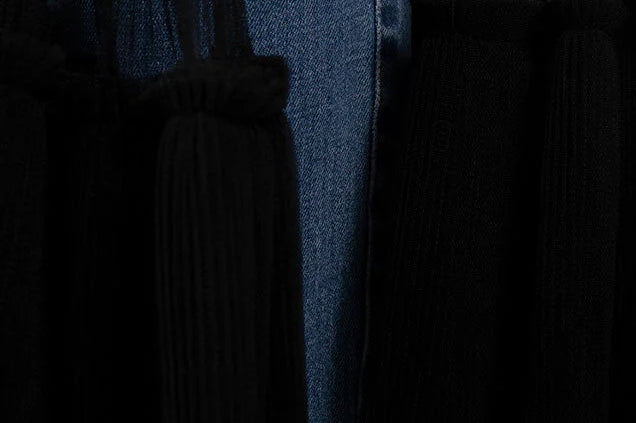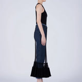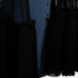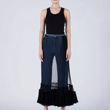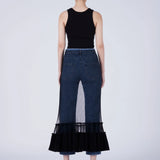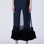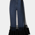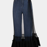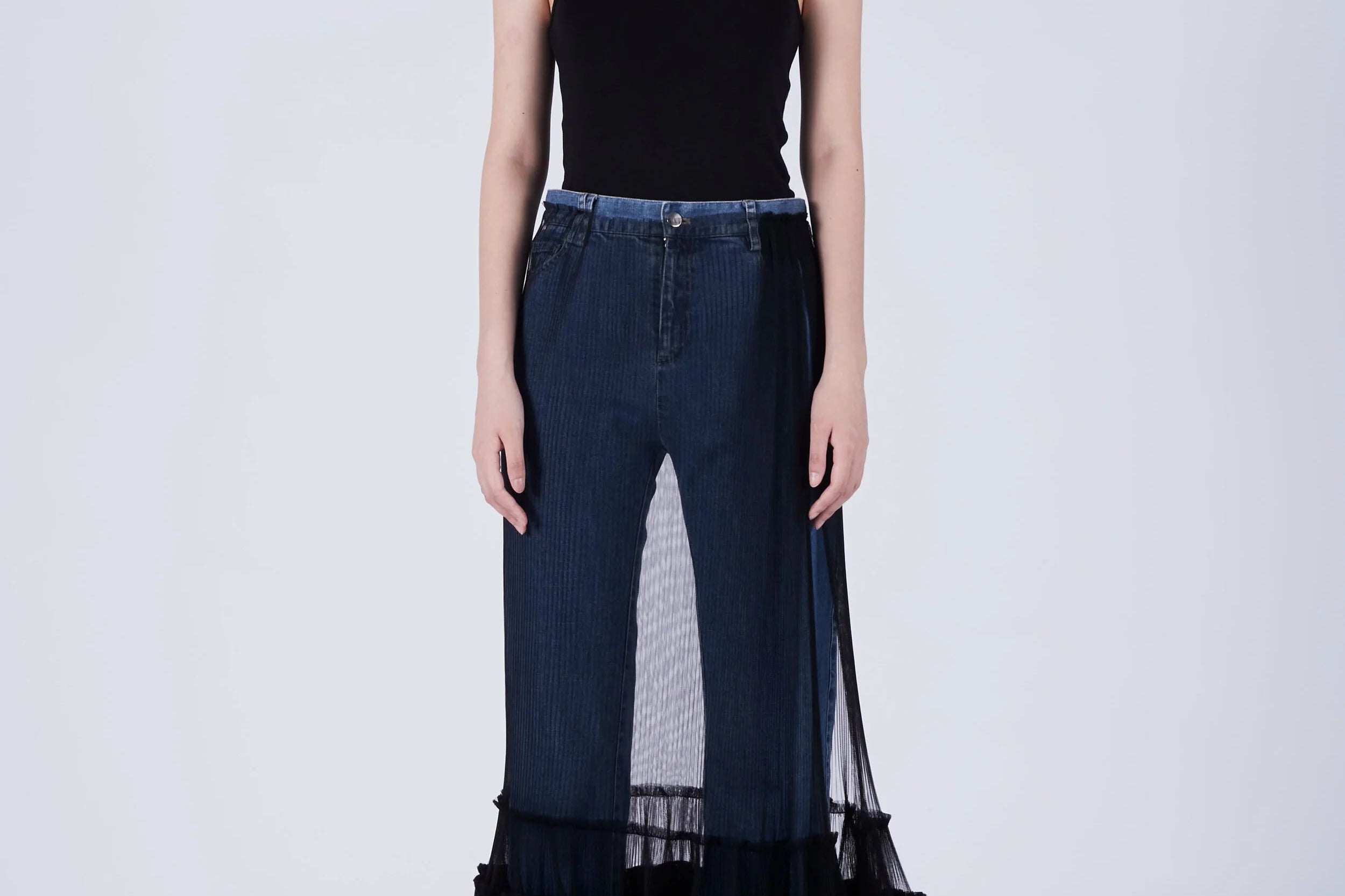 SLIM-FIT WASHED JEANS WITH PLISSÈ TULLE ATTACHED AROUND THE BELT WITH SIDE SPLIT