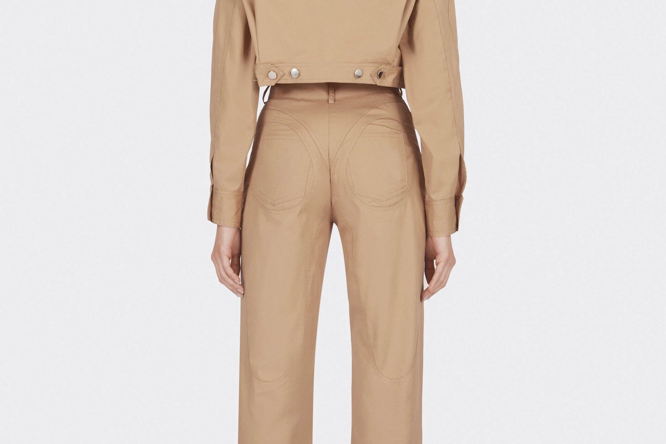 LONG STRAIGHT LEG COTTON PANTS WITH CIRCULAR CUTS