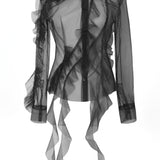 TULLE SHIRT WITH ROUCHES